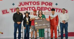 La alcaldesa Carmen Lilia Canturosas realizó el reparto de este apoyo a 300 atletas de Nuevo Laredo