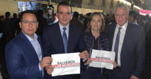 Encabeza en Palacio Nacional, junto con más de 300 alcaldes, la exigencia de audiencia con el Presidente para entregarle pliego de peticiones.