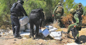 Los Policías Estatales y los elementos de la SEDENA encontraron 22 paquetes de diferentes tamaños confeccionados con cinta gris, que en su interior contenía la hierba.