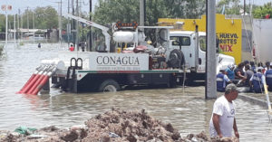 Personal de Protección Civil, atendiendo a familias afectadas por la inundación.