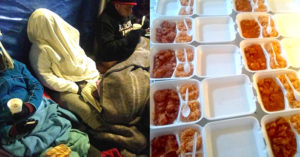 Una pareja de buen corazón acudieron al puente internacional Hidalgo para regalar platillos de comida pero nadie quiso tomarlos