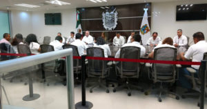 Autoridades que integran el gabinete de seguridad sostuvieron esta mañana una reunión con maestros de la ciudad de Reynosa.