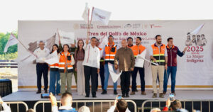 En un enlace virtual con la presidenta Claudia Sheinbaum, Américo Villarreal da banderazo de inicio de esta obra de construcción construcción del tren Nuevo Laredo–Saltillo