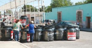 Familias de escasos recursos reciben recipientes para el almacenamiento de agua.