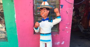 La piñata mide alrededor de un metro con 10 centímetros y viste el tradicional traje huichol con el que aparece en el video