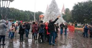 Decenas de familias que transitaban por la Plaza Principal decidieron detener su camino un momento para poder tomarse la foto del recuerdo