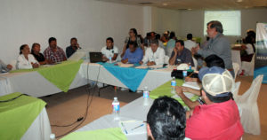 Se contó con tres mesas de trabajo, donde agricultores y productores se retroalimentaron con el apoyo de un presidente, un moderador un relator y un especialista en el tema