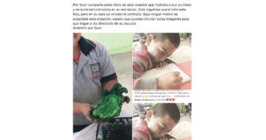 Una maestra publicó en sus redes sociales de internet una fotografía donde muestra a uno de sus alumnos con el “tape” en la boca como una manera para que dejara de hablar y se pusiera a trabajar