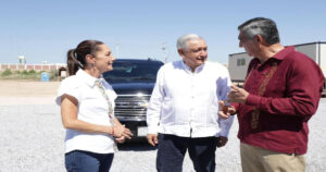 El presidente y su inminente sucesora, con el gobernador Américo Villarreal, sostuvieron un encuentro en Nuevo Laredo para evaluar la modernización del Sistema Aduanal