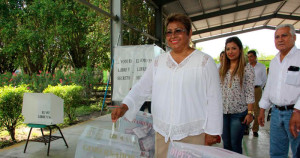 Acudió a la casilla 449 acompañada de su familia y de su compañero de fórmula Rigoberto Rodríguez Rangel