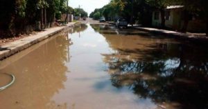 La calle Rafael Delgado se encuentra convertida en una laguna