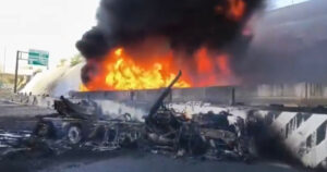 El vehículo de carga se incendió tras un percance a la altura de la colonia Villas de San Juan. Bomberos trabajaron por más de tres horas para controlar las llamas