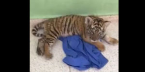 Aseguran cachorro de tigre en aeropuerto de Mérida; era transportado en una caja de madera