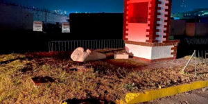 La escultura del presidente quedó sin cabeza y con medio cuerpo mutilado durante la madrugada de este sábado