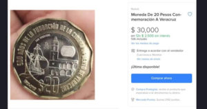 Moneda de 20 pesos conmemorativa de Veracruz se vende en 30 mil pesos