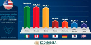 En el primer cuatrimestre de 2021, México y los Estados Unidos generaron un comercio total de 208 mil 642 millones de dólares