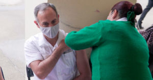 El funcionario acudió a un macrocentro en la colonia Roma para recibir la primera dosis de la vacuna Pfizer-BioNTech