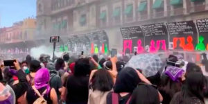 Mujeres logran tirar valla de Palacio Nacional en la marcha 8M