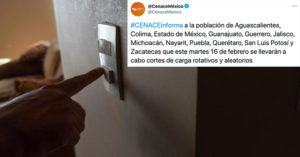 El Centro Nacional de Control de Energía (Cenace) informó que este martes se realizarán cortes de carga rotativos y aleatorios de energía eléctrica