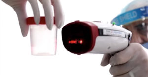 Funciona a través de rayo láser y radiofrecuencia que detecta la proteína del Covid, obviamente hay secretos de patente, secretos de los investigadores, es como si, no voy a decir la marca