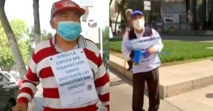 Debido a la pandemia por Covid-19, los adultos mayores que trabajaban como cerillos en el super mercado han tenido que salir a la calle a pedir dinero