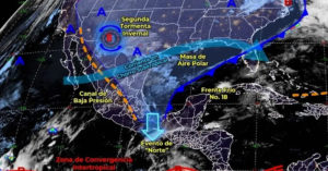 La masa de aire frío asociada, ocasionará ambiente frío a muy frío con heladas matutinas en zonas del norte y centro del país, así como evento de “Norte” fuerte a muy fuerte