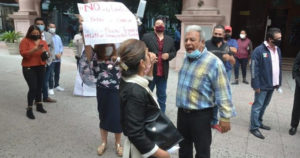 Un grupo de presuntos militantes, se presentaron al evento para protestar contra la postulación de Clara Luz Flores Carrales como candidata a la gubernatura