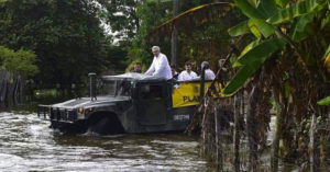 El presidente Andrés Manuel López Obrador aseguró que ha disminuido el nivel de inundación en Tabasco, tras un vuelo sobre La Peñita.