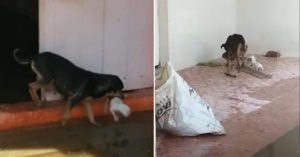 Una perrita fue captada en video salvando a sus cachorritos de las inundaciones ocasionadas por las lluvias en Tabasco.