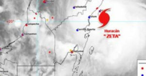 Zeta se desplaza a una velocidad de 20 kilómetros por hora (km/h) con dirección al noroeste; presenta vientos máximos sostenidos de 108 km/h y rachas de 140 km/h.