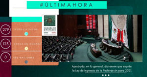 La Cámara de Diputados aprobó el de la Ley de ingresos con 279 votos a favor, 123 en contra y cero abstenciones