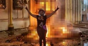 La mujer, que utiliza el seudónimo de ‘peppadelkaos’, publicó la imagen en la que se le observa levantando los brazos en señal de victoria, mientras el fuego consume algunas áreas del recinto