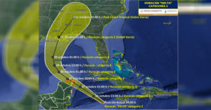 Delta se intensificó a huracán categoría 2 en la escala Safirr-Simpson y continúa su camino hacia el Golfo de México; el fenómeno continuará intensificándose rápidamente