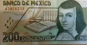 El billete de 200 pesos de Sor Juana Inés de la Cruz fue distribuido por primera vez en 1994.