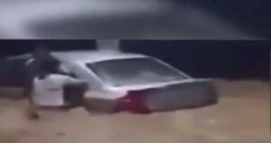 Un hombre salvó a una mujer atrapada en un coche en medio de las inundaciones en el municipio Nicolas Romero, Edomex.