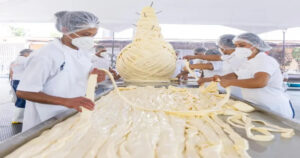 Con un quesillo cuyo peso fue de 636.2 kilos, los habitantes oaxaqueños implantaron un nuevo récord de este producto lácteo consolidado como un estandarte a nivel internacional.