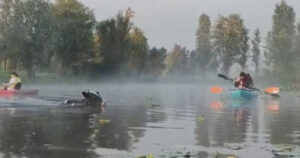Los animales fueron captados por visitantes mientras cruzaban lo canales de manera tranquila a primera hora de la mañana