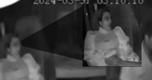 En las imágenes se observa a una mujer vestida de blanco y con una expresión terrorífica sentada en el asiento del copiloto y que parece observarlo sin que el se percate de la situación