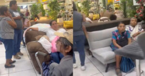 Una tienda se llenó de familias que utilizaron las salas de exhibición y otros muebles para descansar del calor exterior.