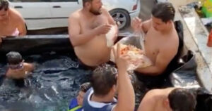 La ola de calor despertó el ingenio de un grupo de hombres, quienes adaptaron la caja de un camión para convertirlo en una alberca temporal