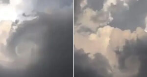 El usuario Tony Bravo captó con su teléfono celular, cómo los ventarrones hicieron girar a una enorme nube