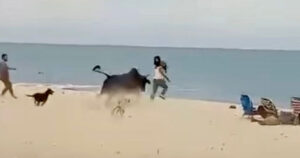 La presencia del toro sorprendió a los bañistas que asistieron a la playa «La Fortuna»