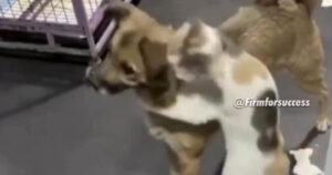 El amor entre gatos y perros es real, así lo demostró un pequeño gato que no pudo ocultar su cariño y felicidad