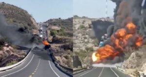 De acuerdo con reporte preliminares del incidente, ambos vehículos se embistieron de frente, provocando un incendio en la carretera Oaxaca-Tehuacán que dejó una columna de humo apreciable a kilómetros de distancia