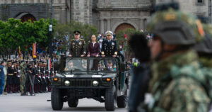 La mandataria salió del balcón principal de Palacio Nacional para pasar revista a las Fuerzas Armadas y dar inicio al recorrido que, como cada año, partió del Zócalo capitalino