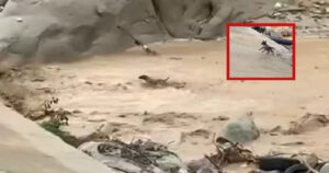 Uso todas sus fuerzas para nadar contra corriente y salvar su vida, el video se ha viralizado en redes