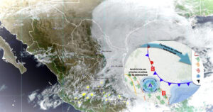 En su simbología de pronósticos, el Meteorológico Nacional señala la cercanía de un frente frío a México.