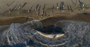 Autoridades locales comenzaron el proceso de enterrar en un pozo al gigantesco animal que llevaba más de 24 horas sin vida cuando fue localizado