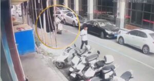 El incidente quedó grabado por una de las cámaras de seguridad instalada en un inmueble cercano a un edificio que lucía que estaba en obra negra de construcción