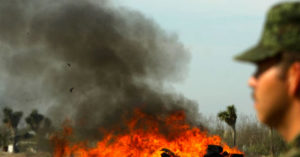 La policía quiso mostrar a la población la gran cantidad de droga incautada a narcotraficantes y no tuvo mejor idea que prenderla fuego en plena calle.